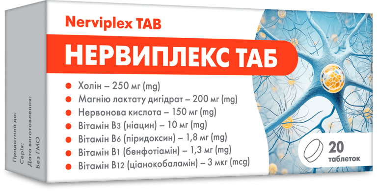 Дієтична добавка НЕРВИПЛЕКС ТАБ таблетки. Комплекс біологічно активних речовин, що входить до складу НЕРВИПЛЕКС...